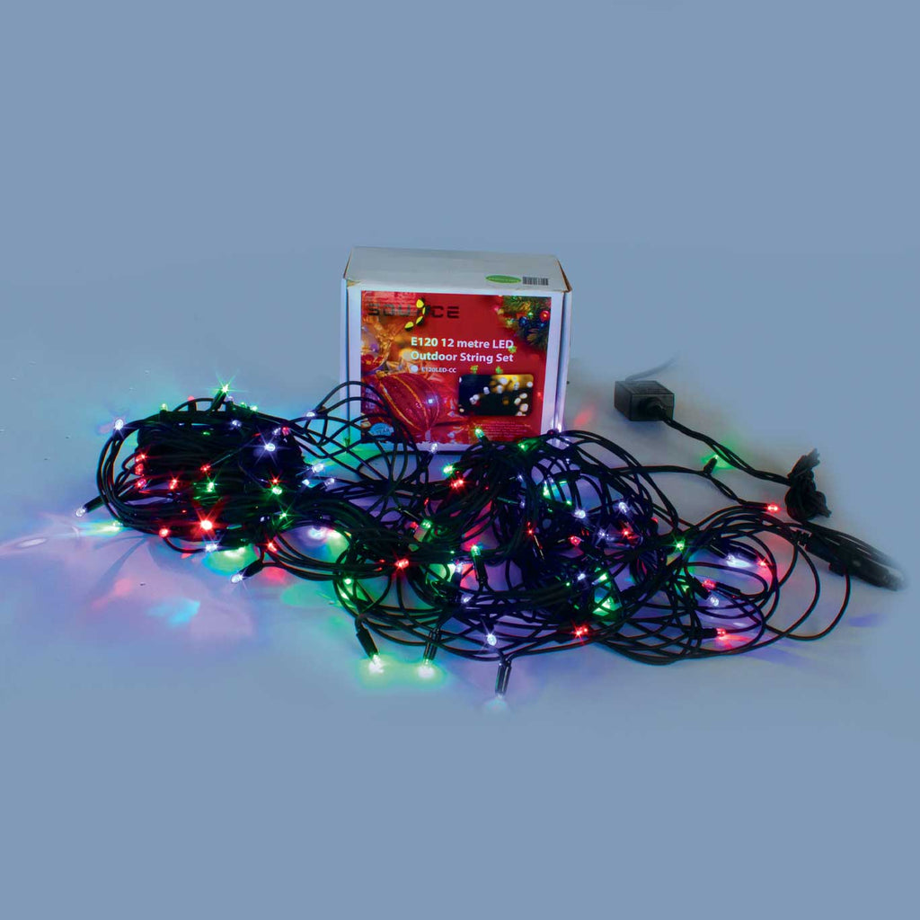 120 LED String Light, Multi Coloured, IP44 - E120LED-CC+CON