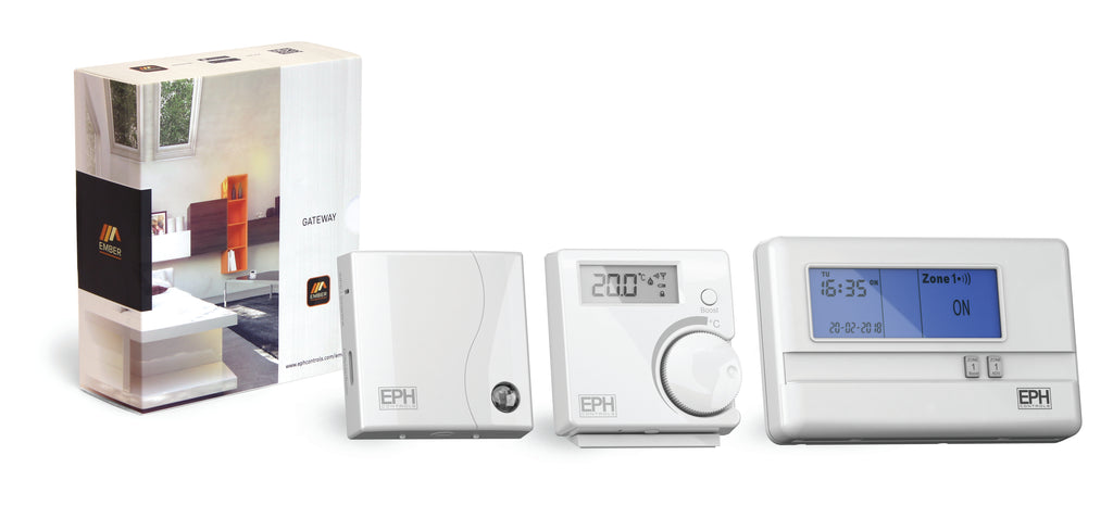 The EPH Ember Pack 1 is a smart heating control solution designed to give users convenient control over their home heating system. Using wireless RF technology and a WiFi gateway, the system allows heating to be controlled remotely from a smartphone or smart device, providing improved comfort and energy efficiency.