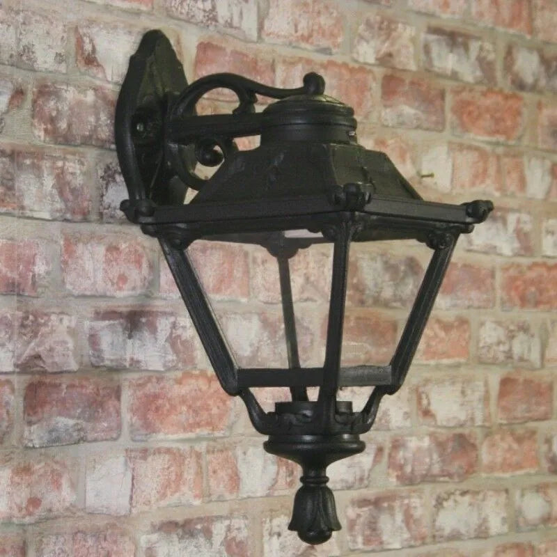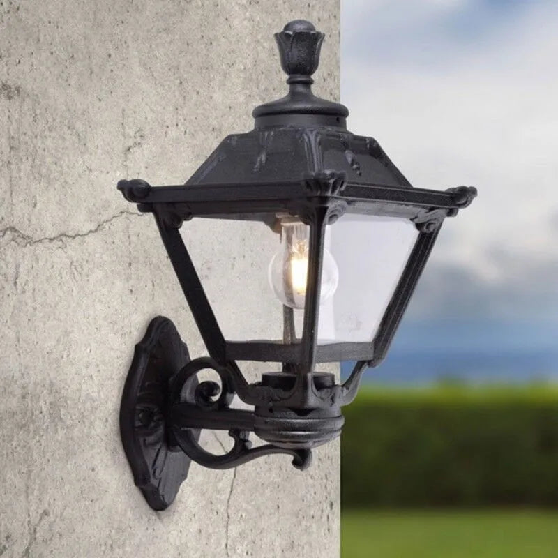 Square lantern in classic style, made of shockproof resin material UV rays stabilized, rust and corrosion-free. E27 lamp holder provided. Insulation class II, protection rating IP55.