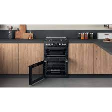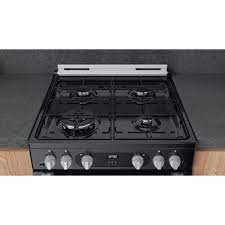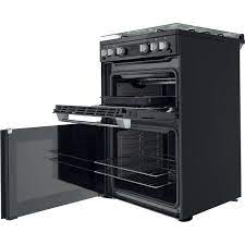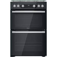 This Hotpoint freestanding 60x60 double cooker features: 4 gas burners. Black colour. Gas power supply. 60cm width.