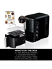 The 7.6L capacity is perfect for feeding up to 6 people, fitting a 1.2kg roast chicken or 400g of French fries in each 3.8L drawer. Cooking up to 55% faster than fan ovens*, you can have complete meals on the table in minutes. (*Tested against fish fingers and sausages.)